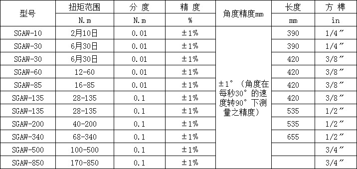 上海鑄衡供應角度儀數顯扭力扳手2000N.m,本廠家銷售的這款SGAW系列角度儀數顯扭力扳手是螺栓緊固檢測及控制專用工具,此款SGAW角度儀數顯扭力扳手具有精度高、測量準確、性能穩定、耗電量低、操作簡單、可換頭等特點,廣泛適用于汽車、摩托車、機械制造等行業的螺栓緊固檢測及控制。